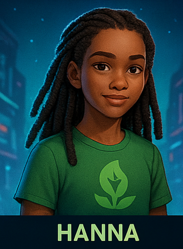 Hanna is the big sister of the crew — calm, aware, and deeply connected to the world around her. Her gift is the ability to sense the energy of living things, activating plant-based power that responds to her voice and her heart.