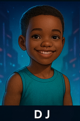 Always moving, always curious — DJ is the spark of the team. His power allows him to activate technology and environments with physical motion, turning movement into energy.