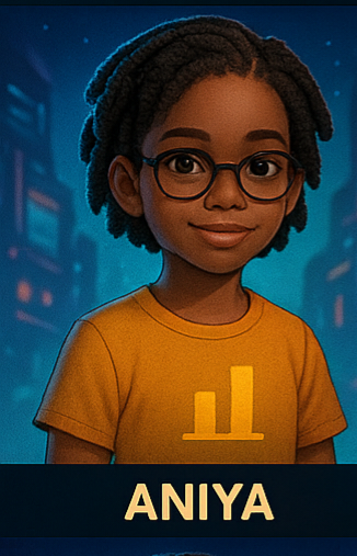 Aniya sees the world in flows: energy, fairness, balance, and numbers. Her glowing data-vision shows her how systems work, and her gift is restoring harmony.