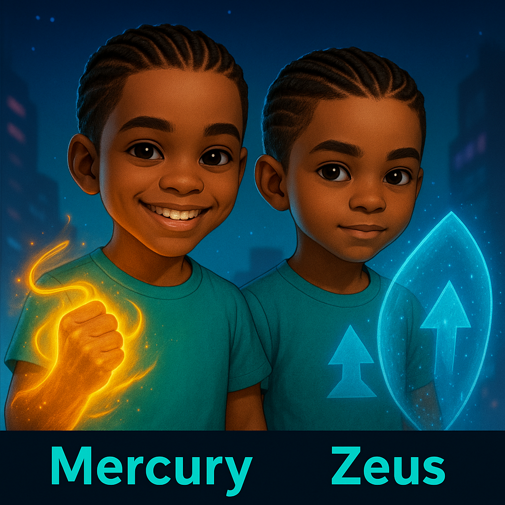 Mercury’s strength grows with joy. His golden aura glows brightest when he’s laughing, lifting, or helping someone in need.